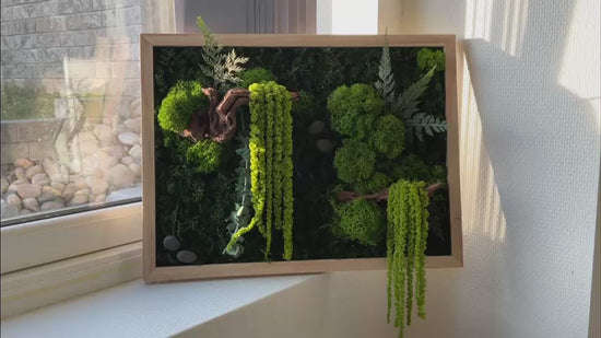 Mosekunst av konserverte naturmaterialer er så godt som vedlikeholdsfri. Siden mosen ikke lenger er levende, trenger den verken vann, sollys eller annet stell. Den holder seg myk og fin i et normalt innemiljø – bare direkte sollys og svært tørr luft for å bevare fargen og smidigheten. Blir kunstverket støvete med tiden, kan du enkelt friske det opp med en myk støvkost. Ellers kan du bare nyte det grønne innslaget uten bekymringer.