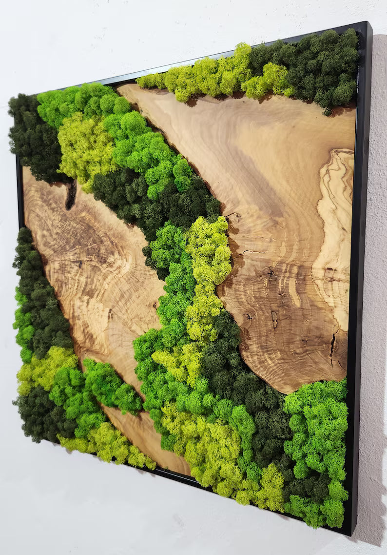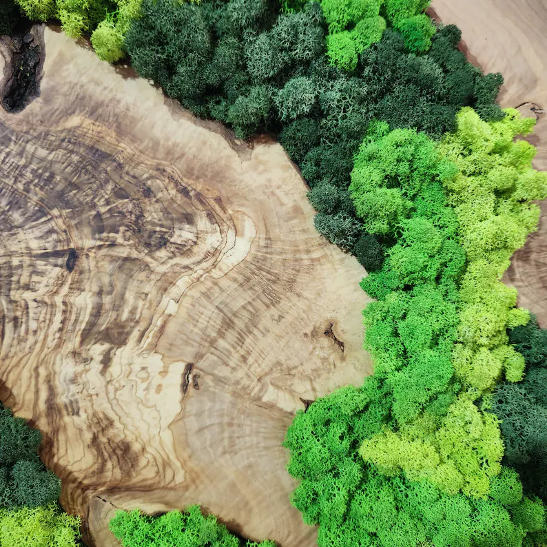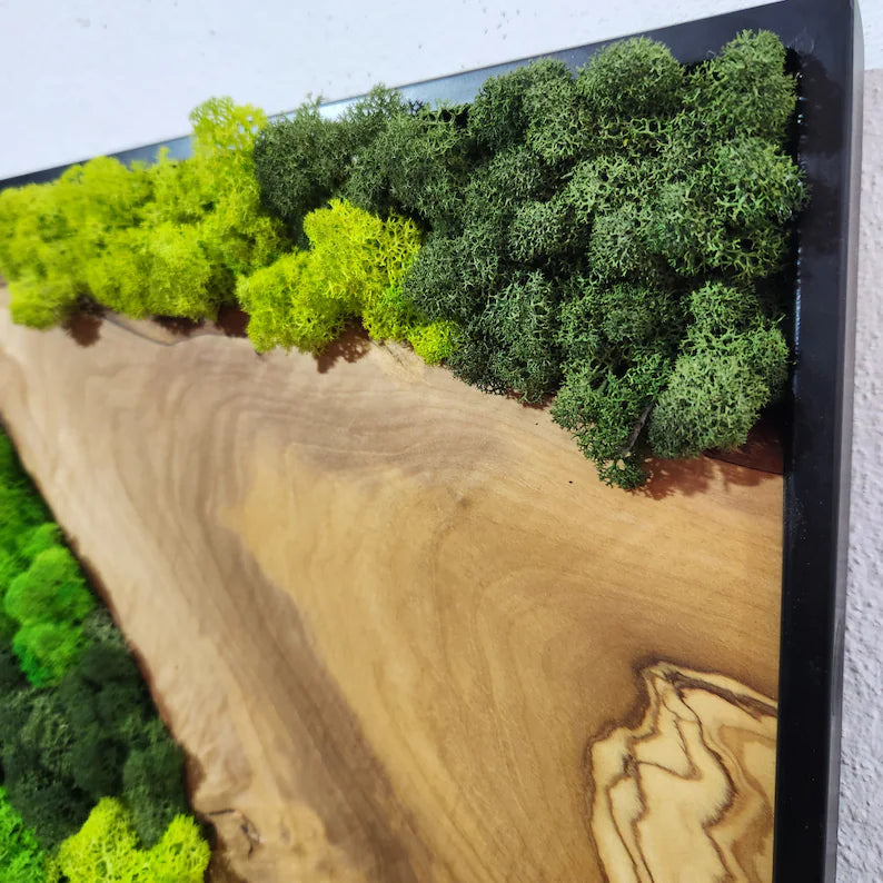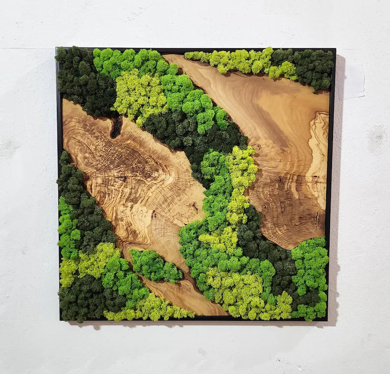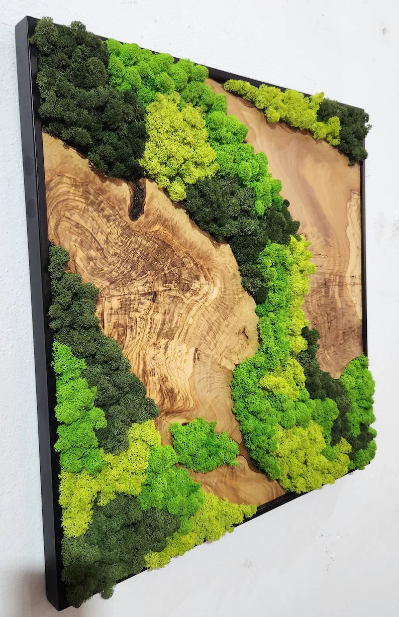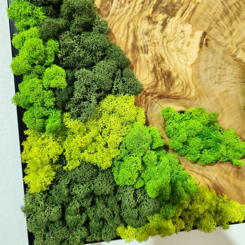 Botanisk stillhet - håndlaget veggkunst av mose med oliventre