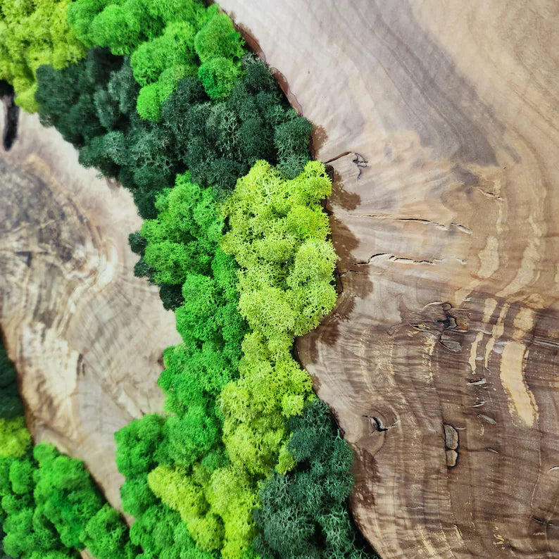 Bildet som vises er et modellbilde . Siden hvert mosebilde er laget for hånd med naturlige materialer, kan det være små variasjoner i farge, form og struktur. Dette er en del av det unike uttrykket og kvaliteten til håndlaget kunst.
