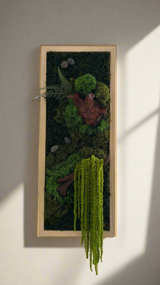 Unik veggdekorasjon med ekte konservert mose, skapt for å vare